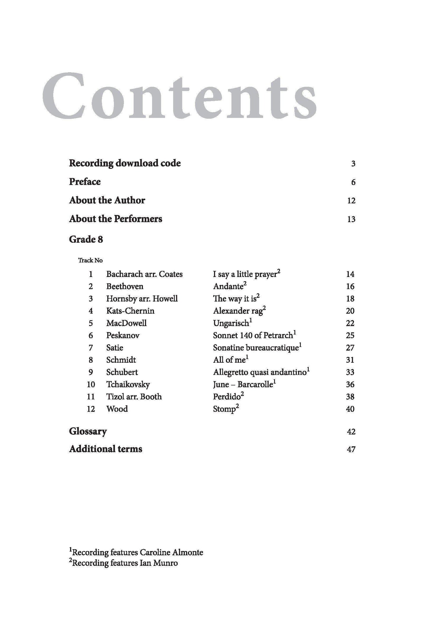 Complete with a glossary of key terms, this Recording & Handbook helps students address the Section III General Knowledge requirements of examinations. Contains a code to download recordings of all the repertoire that is contained in the corresponding grade book, as well as detailed analyses of all these pieces with a wealth of information about the historical, biographical and interpretative elements of each of the works.