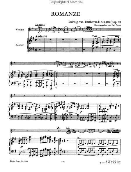 Ludwig van Beethoven's Two Romances Op.40 (G); Op.50 (F), for Violin and Orchestra. Violin and Piano reduction, edited by David Oistrakh. Grade 8 level.