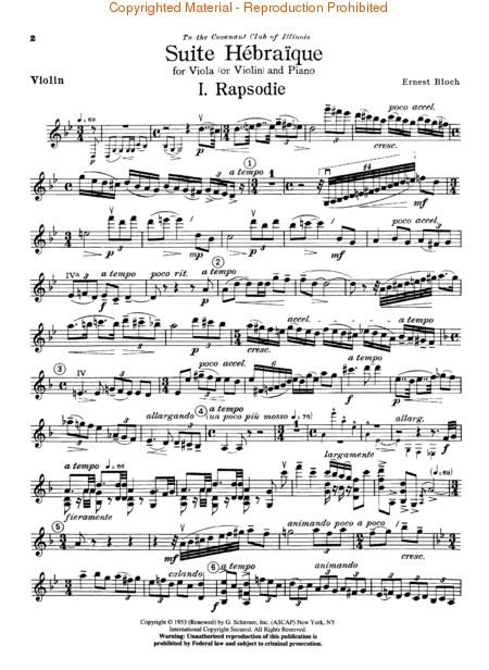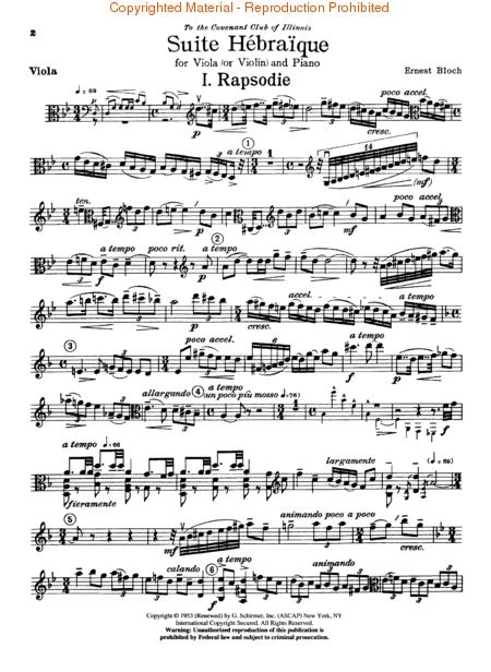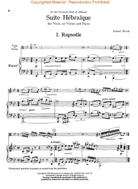 Bloch, Suite Hebraique for Viola and Piano (Schirmer)