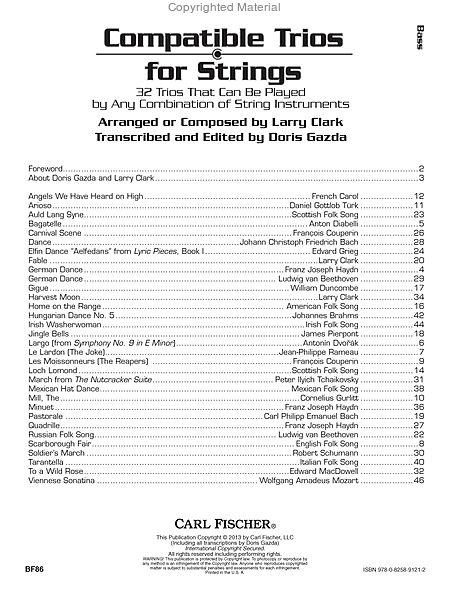 If you have a couple of friends who play another instrument and you want to play some trios with them for fun or in a performance, then this is the book for you. This collection contains 32 trios in a variety of styles from classical to folk music to original pieces that will be fun to play with any combination of three string instruments. Trios are a great way to learn how to play in a chamber music setting and this unique collection gives you the opportunity to do it with anyone else who plays a string instrument – making the combinations of instruments that can be used extensive. Compatible Trios for Strings are perfect for use in school setting when students come in at lunchtime or after school and want to play for fun with their friends. The flexibility of these trios makes them a must-have for any string player.