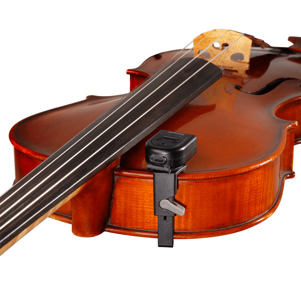 The Micro Rechargeable Viola Tuner is the sleekest, most efficient way to tune your instrument. It features an easy-to-read, multi-color display in an attractive compact design and is fully rechargeable with the included USB-C cable. A non-marring, lever-lock clamp holds the violin tuner securely to the instrument, while still allowing easy application and removal. This precision viola tuner is not only perfect for tuning, but the unique mounting system and fast pitch response allow it to be used as an effective practice tool for referencing and improving intonation while playing.
