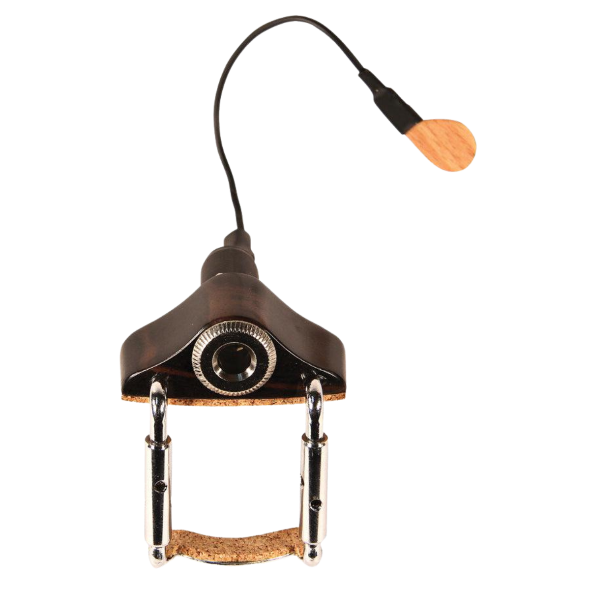 The VV-3 offers clean and clear acoustic sound, easy installation without instrument modification, and a lightweight low-profile ebony jack housing ideal for the performing musician. Secure the output jack to the lower bout of the instrument, slip the VV-3 sensor into the eye of the bridge and you’re ready for any live or studio performance. Passive.