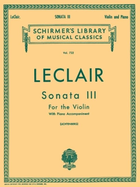 Leclair, Sonata in D Op. 9 No. 3 for Violin and Piano (Schirmer)