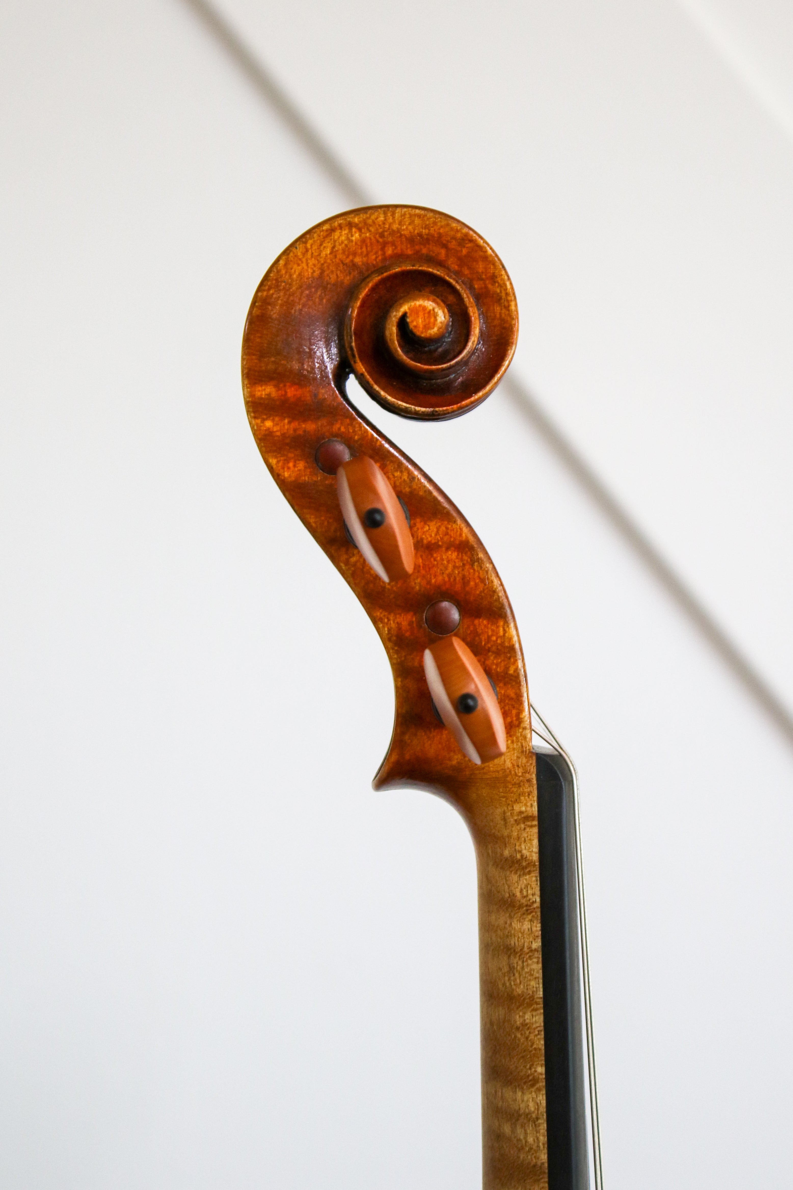 Crafted in Cremona in 2023 by renowned maker Maurizio Tadioli, this violin is a bold yet refined instrument. The deep golden-brown varnish enhances its medium-grained spruce top and one-piece maple back. Fitted with boxwood fittings and chin rest, this violin offers a powerful, rounded voice with directness and clarity; a sound that fills the room with presence while retaining warmth and balance. It is an inspiring choice for advanced and professional players seeking an instrument that combines strength, responsiveness, and expressive range.