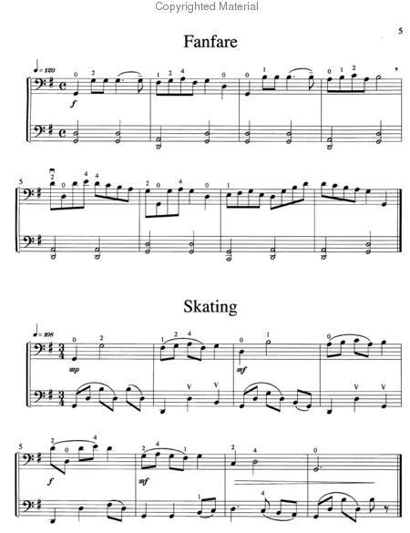 Contents: A Note to Students, "Upper" Second Position, Target Practice and Geography Quiz, Names and Numbers, Fanfare, Skating, The Elephant's Waltz, The Tired Tortoise.