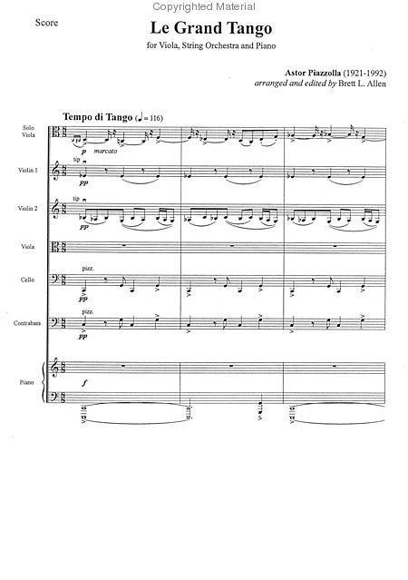 Astor Piazzolla’s well-loved Le Grand Tango has been arranged here for solo viola with piano. Astor Piazzolla’s well-loved Le Grand Tango has been arranged here for solo viola with piano. A perfect concert piece. Also available for viola with string orchestra and piano.