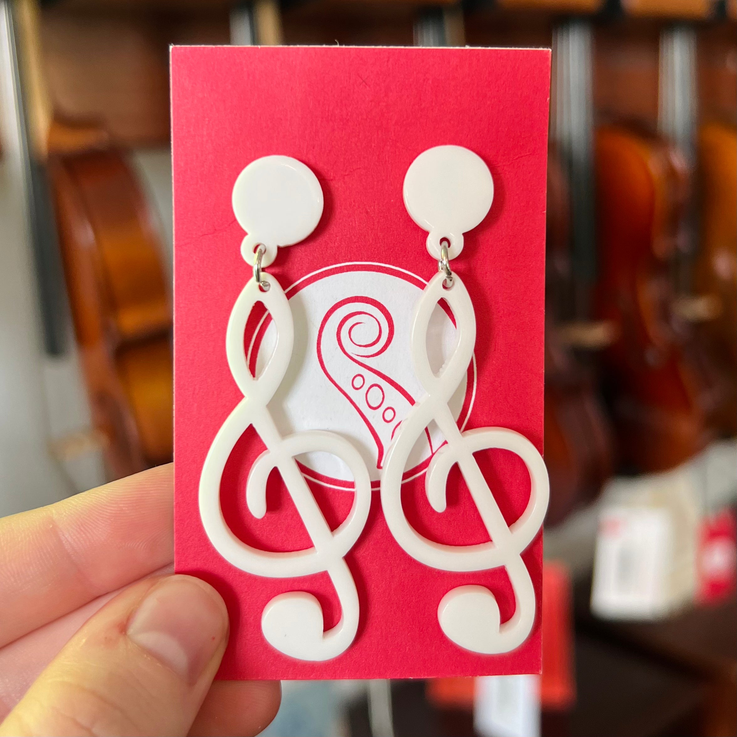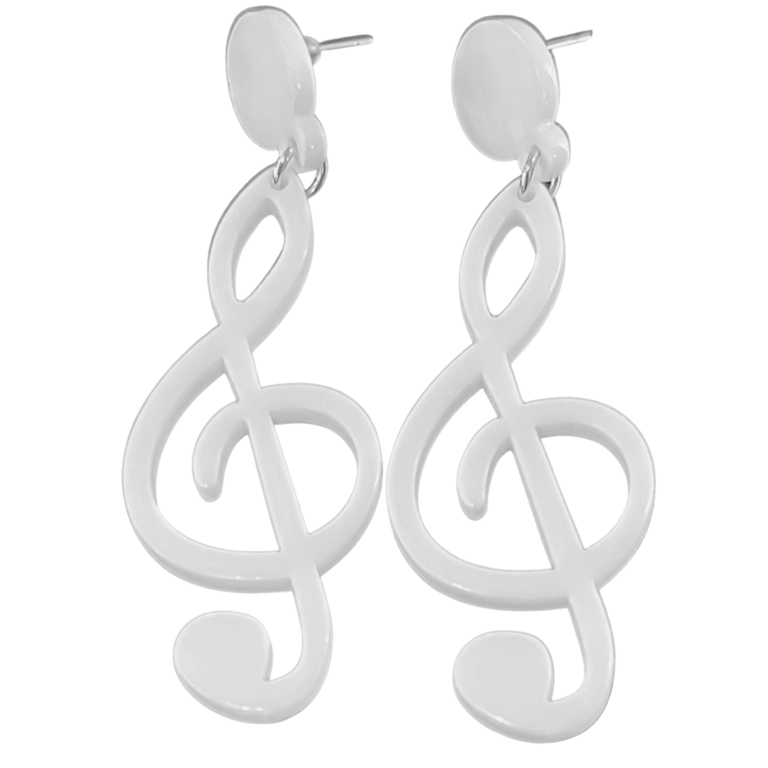Treble Clef Acrylic Earrings - White