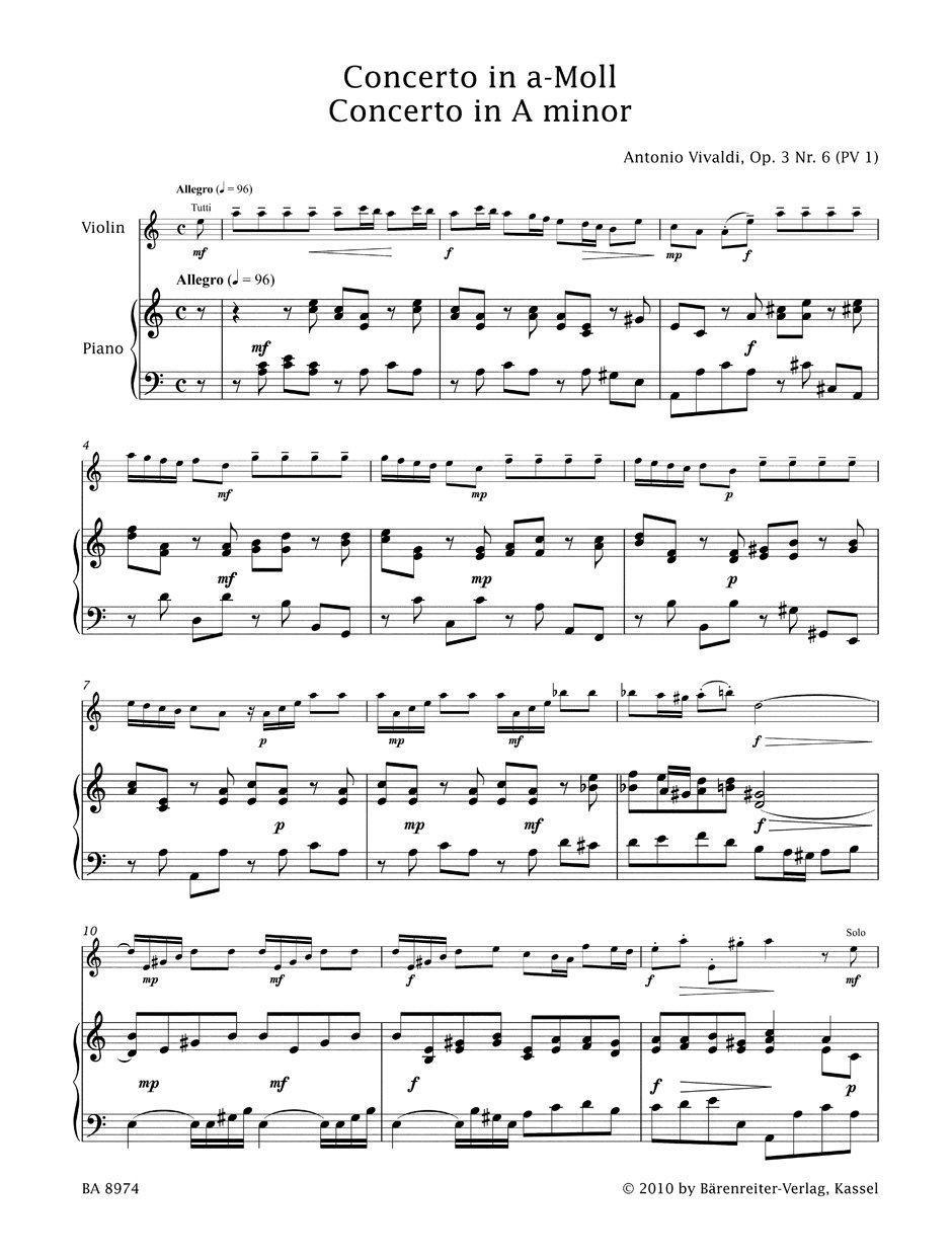 Vivaldi, Concerto in A Minor Op. 3 No. 6 for Violin and Piano (Barenreiter)