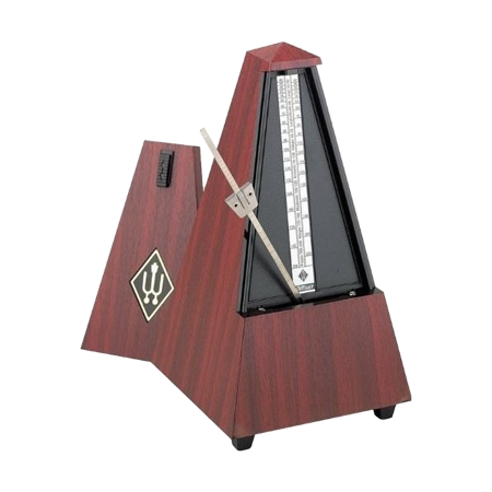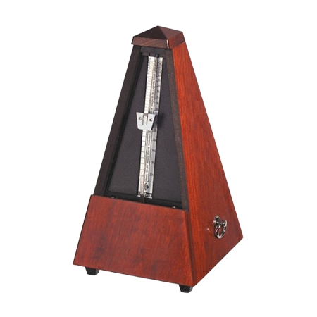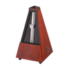 The Wittner Maelzel range of metronomes are traditional style pyramid metronomes. They feature a wooden case with a woodgrain finish to match with your piano or the decor of a musicroom. These German made metronomes have a clockwork mechanism with a swinging pendulum and a bell sound which can be added to the clicking rhythm and made strike on the 2nd, 3rd, 4th or 6th beat.