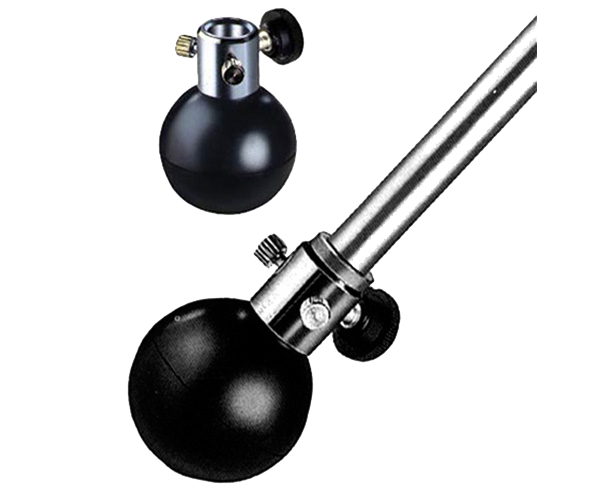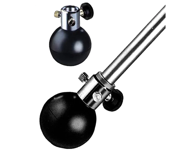 Rubber ball attaches directly to endpin spike. 10mm Ø socket. Secures to rod with two set screws and one major thumb screw. Nonslip on most surfaces. Small and compact. Made in Holland. *suitable for instruments that will fit the 10mm socket.